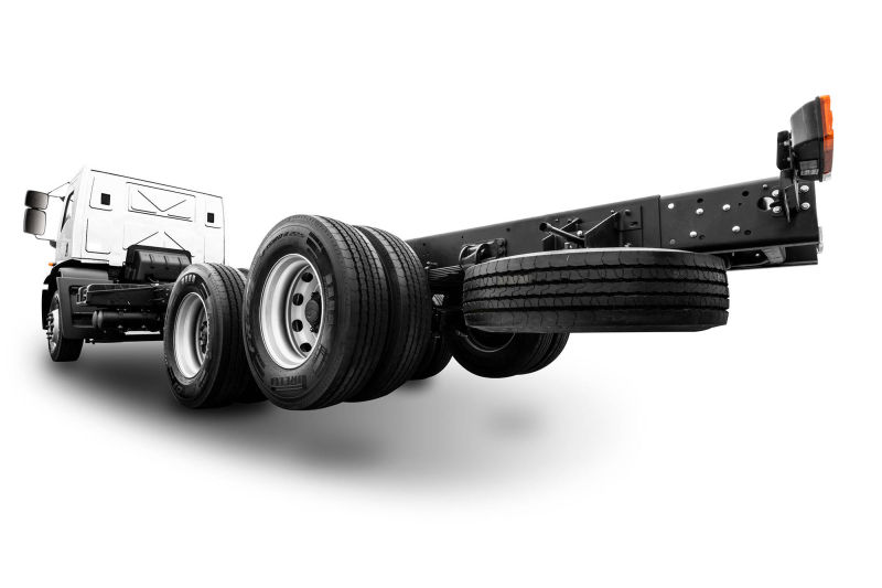 El Nuevo Cargo 1723 6x2 cuenta con un tercer eje con izamiento neumático y permite aumentar su peso bruto total a 24.150 kg junto a un robustísimo chasis doble. Cuenta con dos distancias entre ejes (4.800 mm y 5.300 mm) brindando una longitud disponible para el carrozado que se adapta a las más variadas exigencias.